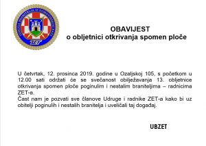 ← Skupština Udruge branitelja ZET-a Odavanje počasti Branku Pleši →