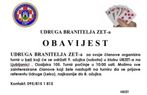 U organizaciji Udruge branitelja ZET-a, 9. ožujka održan je turnir u beli. Na turniru je nastupilo 20 parova među kojima su najuspješniji bili: