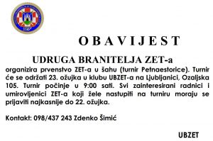U subotu, 23. ožujka u organizaciji Udruge branitelja ZET-a održan je Uskršnji turnir u šahu – prvenstvo ZET-a. Najuspješniji bili su: 1. mjesto: Ranko Livić. 2. mjesto: Slobodan Suvajac a treće mjesto osvojio je Zoran Grgos.